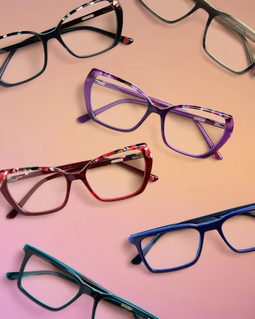 The clothing and backgrounds contrast but complements the eyewear. Models are naturally styled, positive and active.